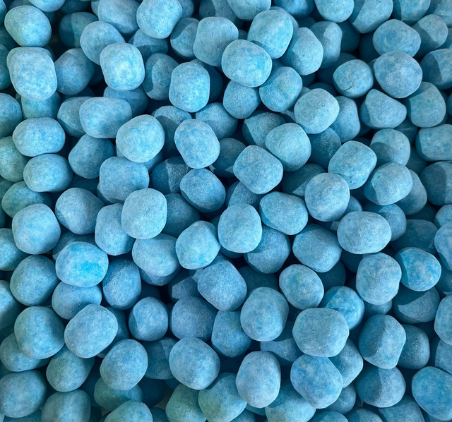 These sweetshop favourites have a fruity blue raspberry flavour, a deliciously chewy toffee centre, and a touch of extra sweetness with their dusted sugar coating